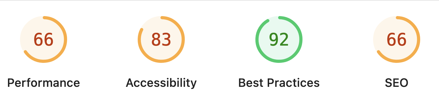 Using Lighthouse, it immediately becomes clear that this website has numerous issues acroos different areas.